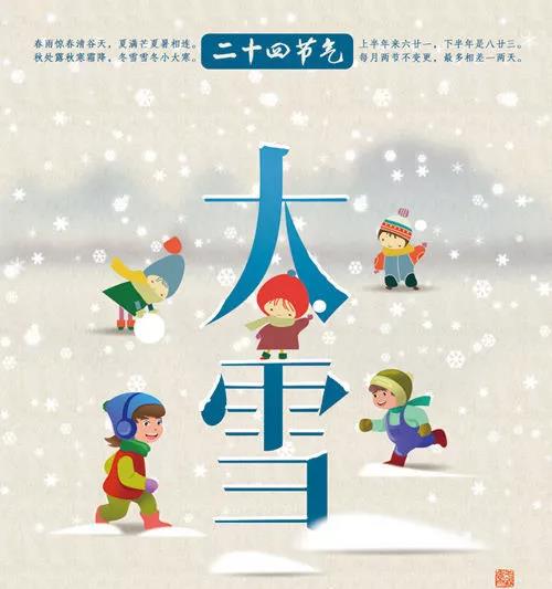 大雪是“进补”的好时节,素有“冬天进补,开春打虎”的说法。冬令进补能提高人体的免疫功能,促进新陈代谢,使畏寒的现象得到改善。冬令进补还能调节体内的物质代谢,使营养物质转化的能量最大限度地贮存于体内,有助于体内阳气的升发,俗话说“三九补一冬,来年无病痛”。此时宜温补助阳、补肾壮骨、养阴益精。冬季食补应供给富含蛋白质、维生素和易于消化的食物。大雪节气前后,柑桔类水果大量上市,像南丰蜜桔、官西柚子、脐橙雪橙都是的当家水果。适当吃一些可以防治鼻炎,消痰止咳。大雪时北半球各地日短夜长,因而有农谚“大雪小雪、煮饭不息”等说法,用以形容白昼短到了农妇们几乎要连着做三顿饭的程度。可常喝喝姜枣汤抗寒;吃桔子、用薄荷油防治鼻炎,消痰止咳。