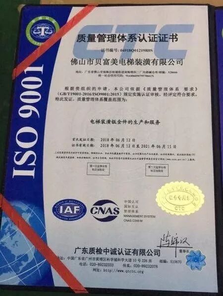 作为一家专业生产高档电梯轿厢装潢的公司,贝富美电梯从设计到施工,从服务到质量,从项目咨询到项目规划,提供完善的售前和售后服务,为国内外客户提供量身定做的电梯装饰综合解决方案。为把事业做大做强,公司从原来的500平方扩建到3000平方。2018年公司已通过ISO9001国际质量体系认证,严格控制产品质量及安装工艺。并同时荣获2018年电梯装潢十大品牌之一。并与日立、奥的斯、三菱、通力、蒂森等电梯品牌并建立广泛合作关系。