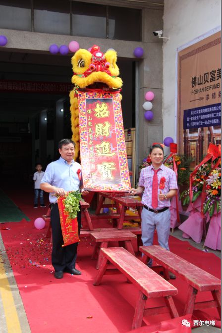 象征祥瑞,祈福兴旺的精彩舞狮表演为当天的活动拉开了帷幕。活动现场,佛山市贝富美电梯装潢有限公司创始人谢崇财先生(兼广州菱伴电子设备有限公司总经理)发表了激动人心的致辞,感谢业界各位朋友和客户一直以来的支持与合作,让贝富美电梯业绩蒸蒸日上,供不应求。再者为了满足日益发展的业务需求,公司又购入全新的激光机、智能折弯机、剪板机、冲床等先进设备,引进了大批新技术人才,扩大了公司厂房规模。为广大客户的服务提供了强有力的保障。随后,谢崇财总经理和胡美荣技术总经理共同进行了贝富美电梯厂房升级的剪彩和启动仪式。