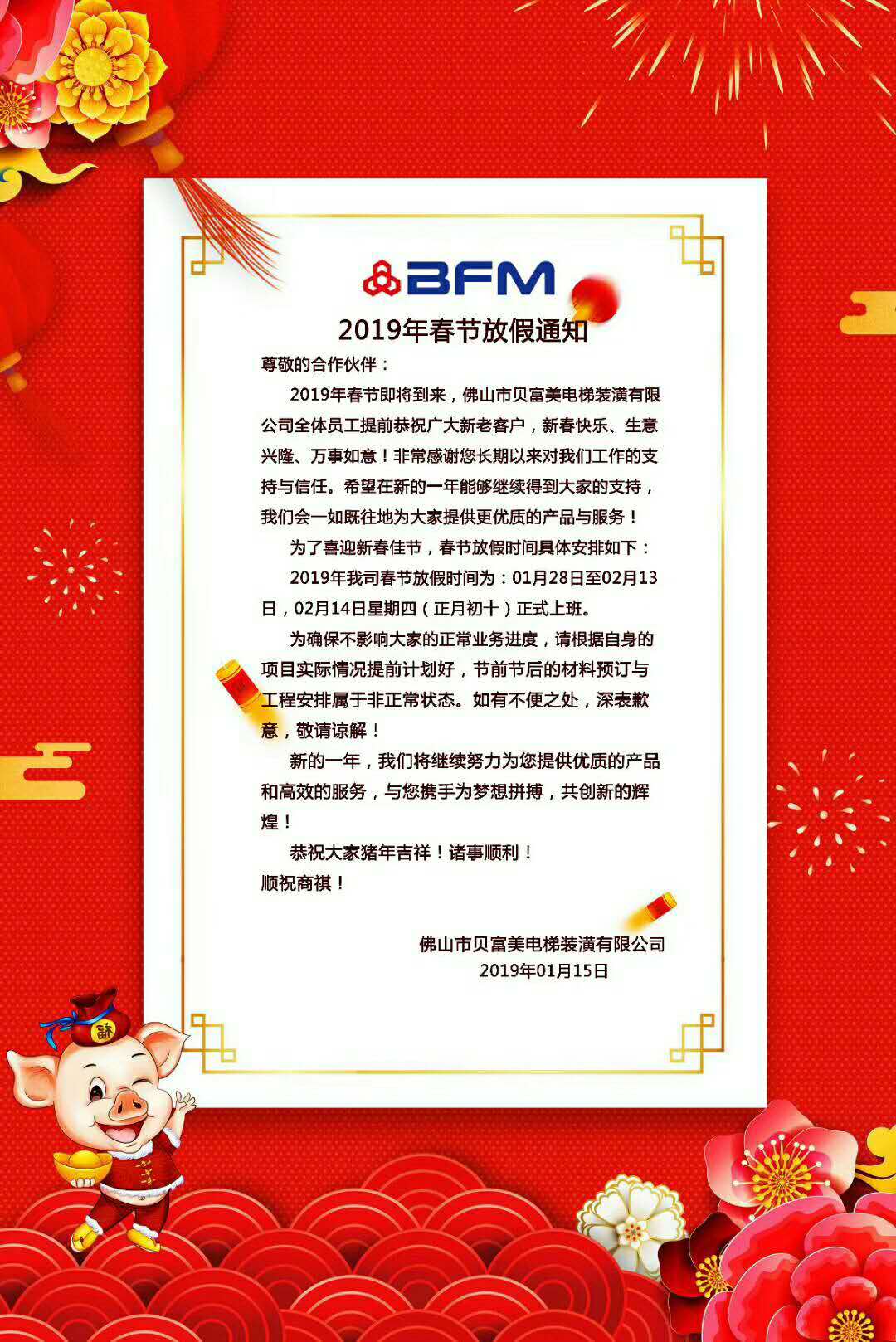 2019年春节放假通知